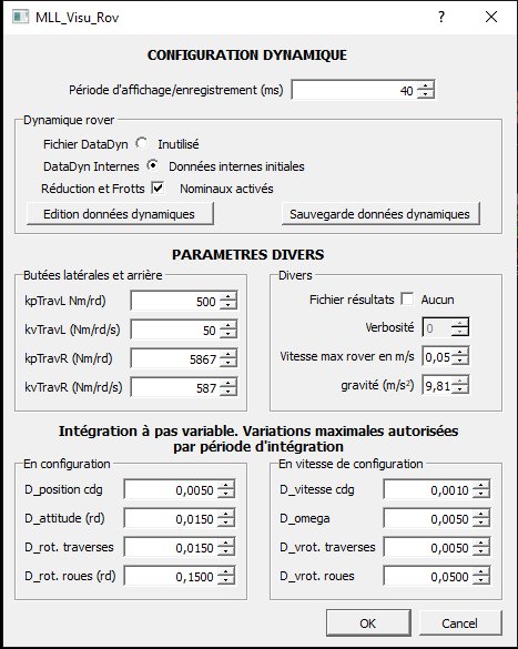paramètres du modèle dynamique du rover (cliquer pour aggrandir les